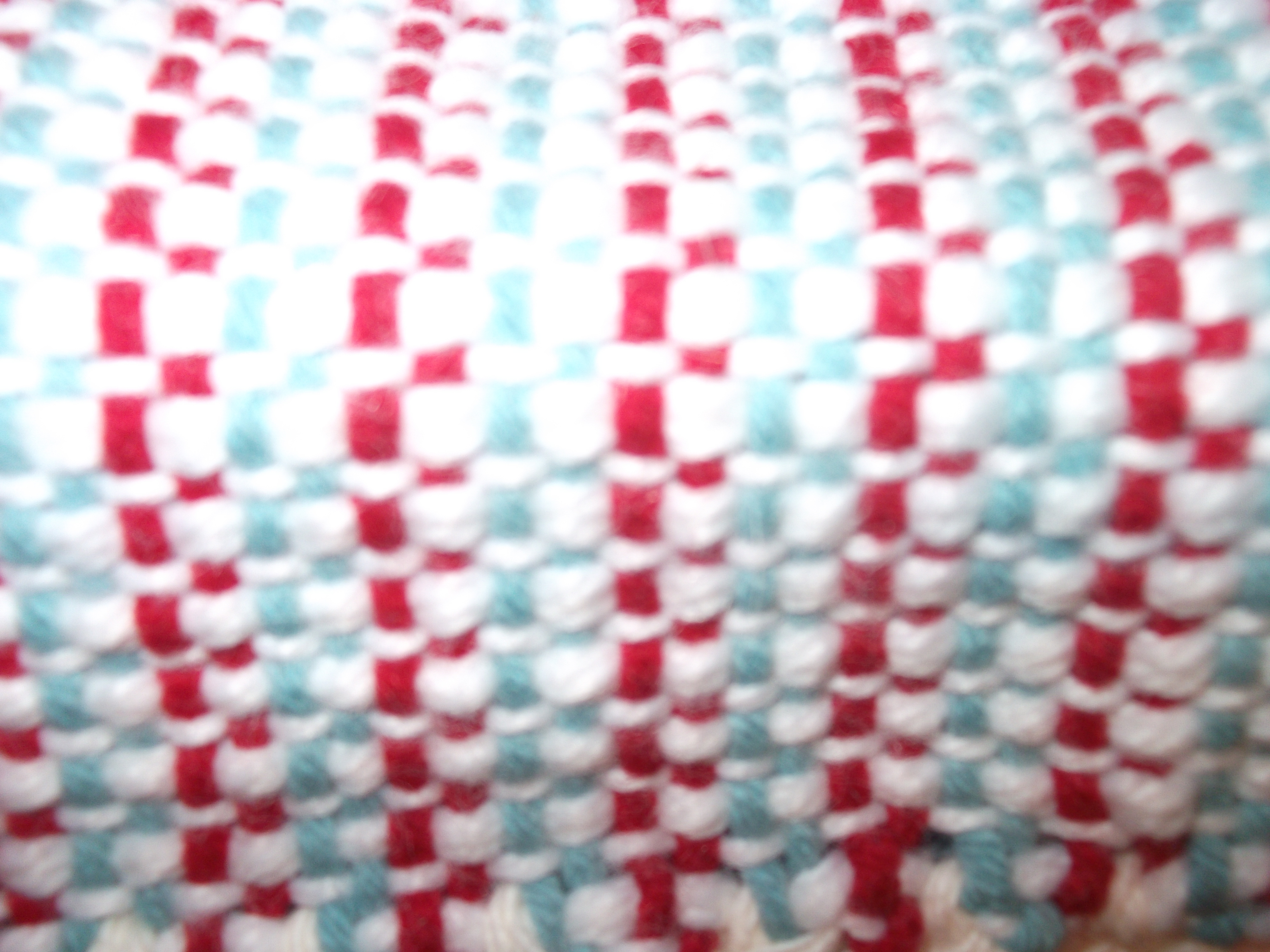 The cloth is a modified basket weave. See the pattern? That’s fine, except that that was not “supposed to be” the pattern. It “should” have had 2 layers instead. But I chickened out at the last minute before attaching the warp to the loom and chose the basket weave. Thought 2 layers were “too much” for me.